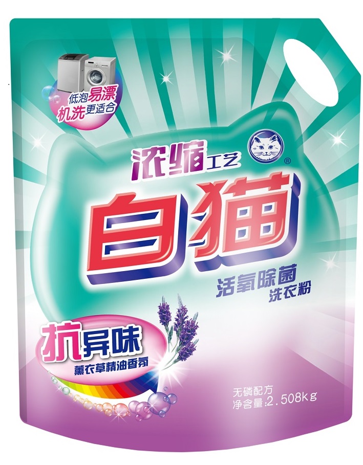 白猫活氧除菌洗衣粉,创新采用“浓缩+活氧”配方,以授权发明专利技术生产(发明专利:2012101846691一种高密度洗衣粉及其制造方法),3倍去污力,高效去污;活氧除菌,除菌率>99.9%;抗异味功能,持续48小时。在洗净衣物的同时,更给消费者送上健康与清新,一次洗涤,多重功效。